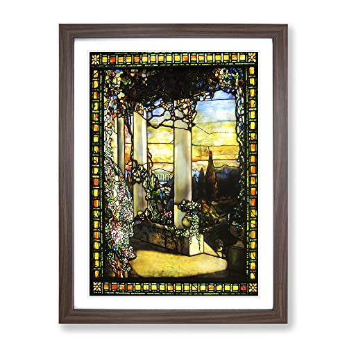 Big Box Art Framed Print of Louis Comfort Tiffany Stained Glass Window 2 Design | Wall Art Picture | Home Decor for Kitchen, Living Room, Bedroom, Hallway, Walnut, A2 / 24.5x18 Inch / 62x45cm