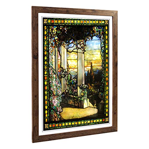 Louis Comfort Tiffany Stained Glass Window 2 Classic Painting Framed Wall Art Print, Ready to Hang Picture for Living Room Bedroom Home Office Décor, Walnut A2 (64 x 46 cm)