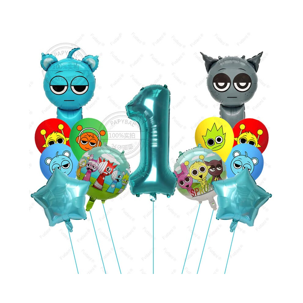 (1, AS PICTURE) 13pcs Sprunki Tiffany Blue Cartoon Foil Balloons - Colorful Rhythm Box Theme for Birthday, Baby Shower Parties