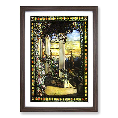 Louis Comfort Tiffany Stained Glass Window 2 Classic Painting Framed Wall Art Print, Ready to Hang Picture for Living Room Bedroom Home Office Décor, Walnut A3 (34 x 46 cm)