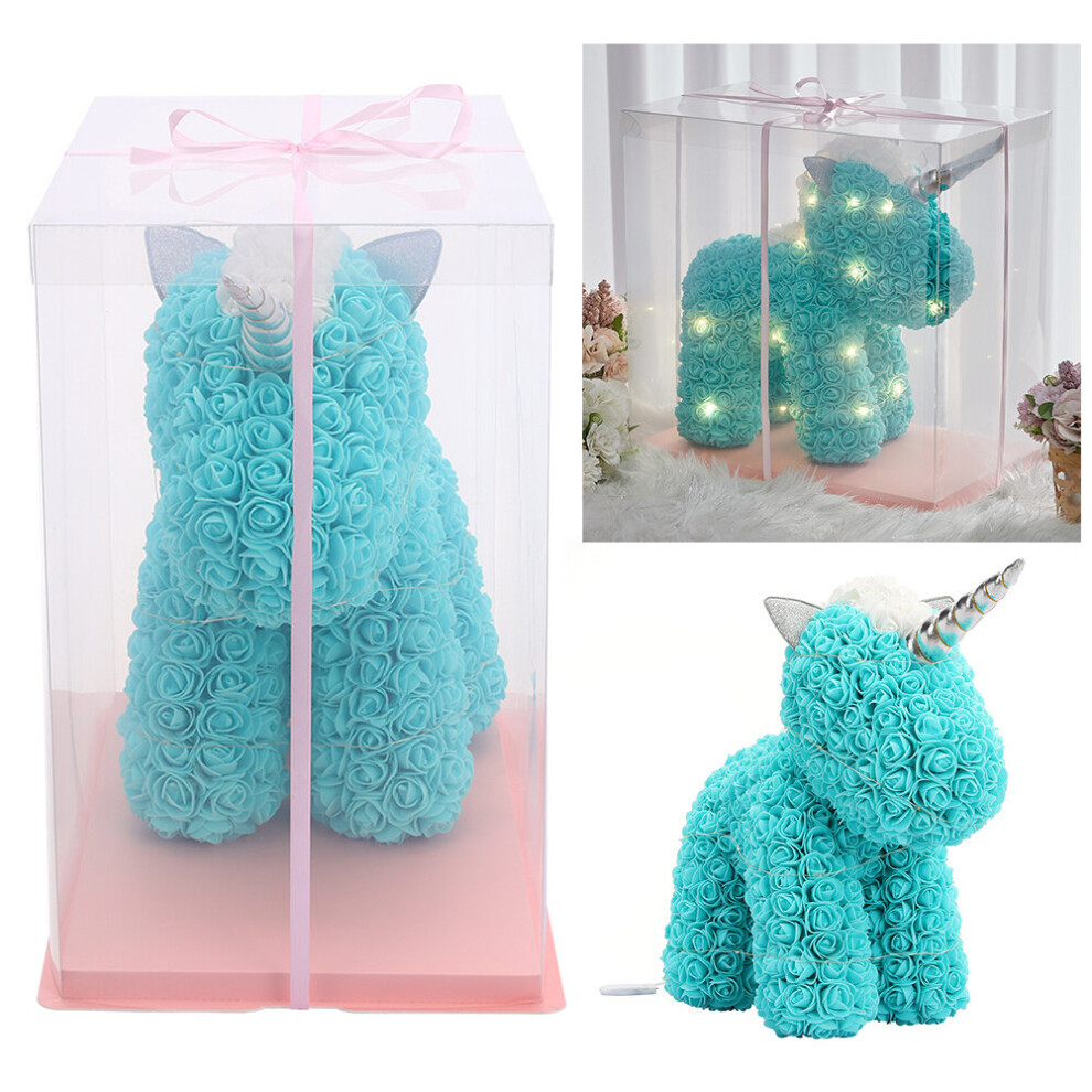 (Tiffany Blue) 40cm Foam Flower Rose Unicorn Fantasy Valentine Wedding Birthday LED Gift Box