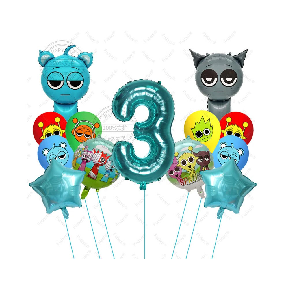 (3, AS PICTURE) 13pcs Sprunki Tiffany Blue Cartoon Foil Balloons - Colorful Rhythm Box Theme for Birthday, Baby Shower Parties