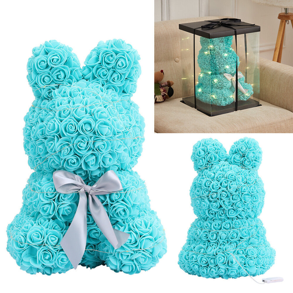(Tiffany Blue) LED Foam Rose Rabbit Bunny Artificial Flower Doll Wedding Birthday Gift With Box