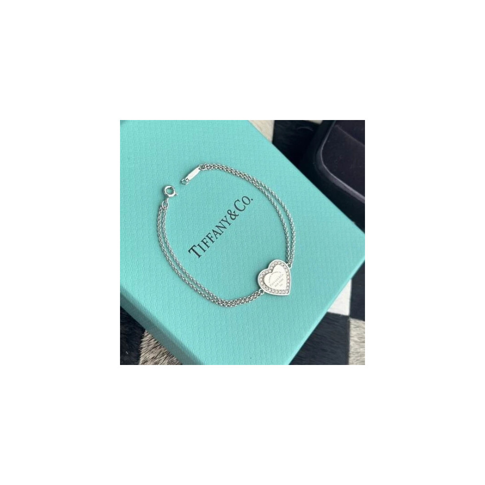 Return to Tiffany Heart Tag Double Chain Bracelet, Sterling Silver Bracelet &Box