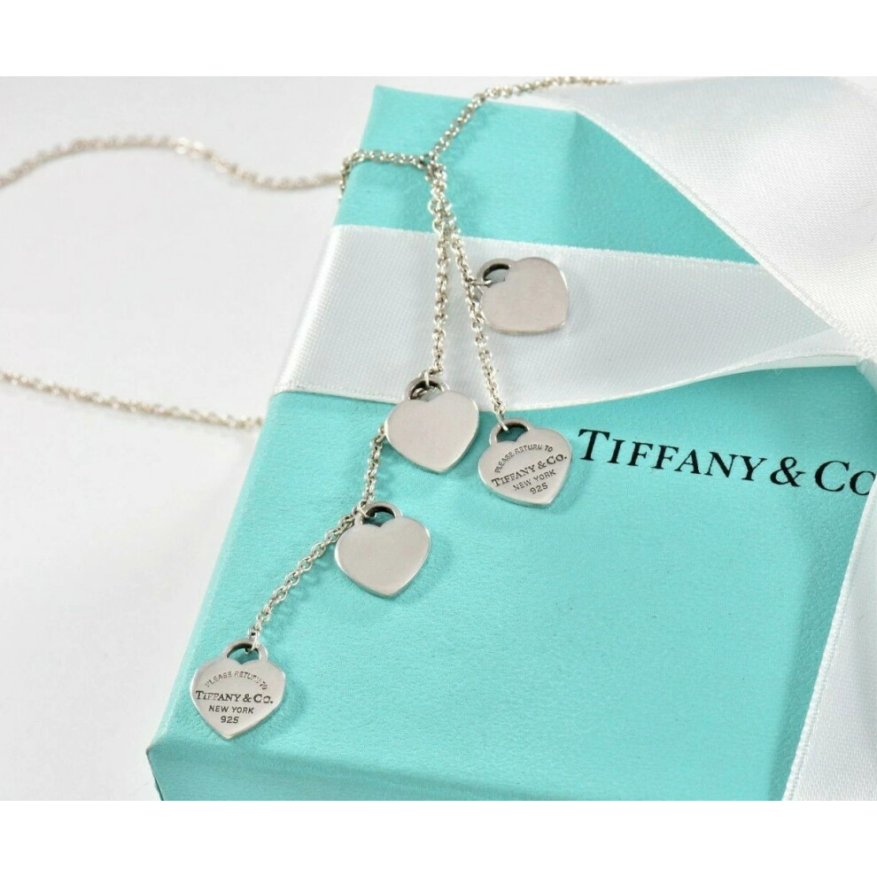 Tiffany & Co Five Heart Tag Dangle Pendant Necklace in Box 5 Drop