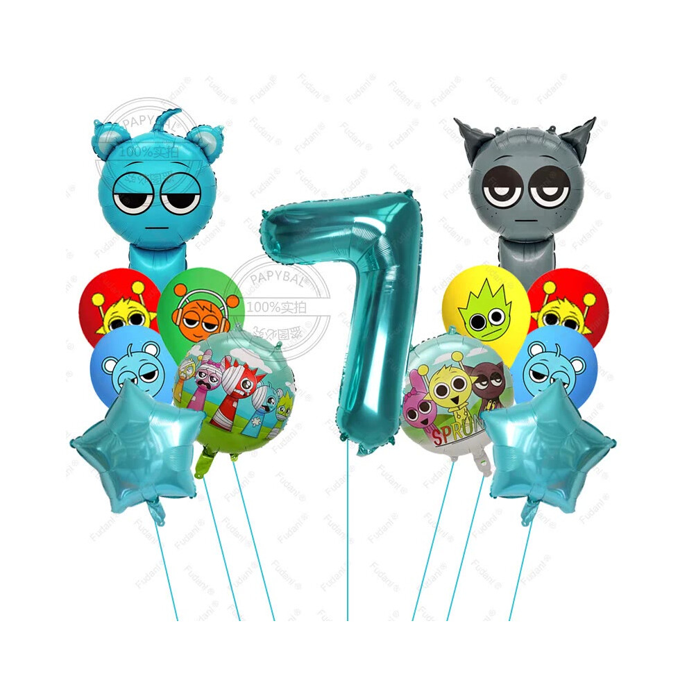 (9, AS PICTURE) 13pcs Sprunki Tiffany Blue Cartoon Foil Balloons - Colorful Rhythm Box Theme for Birthday, Baby Shower Parties
