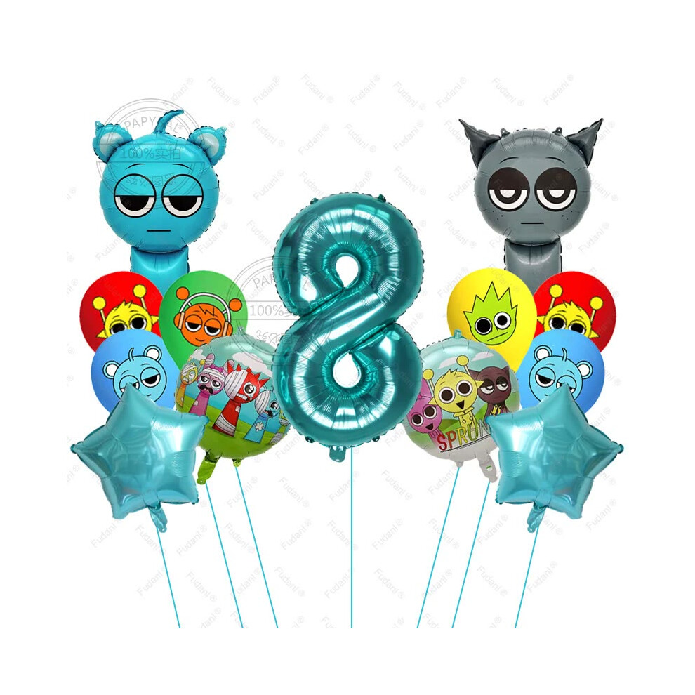 (8, AS PICTURE) 13pcs Sprunki Tiffany Blue Cartoon Foil Balloons - Colorful Rhythm Box Theme for Birthday, Baby Shower Parties
