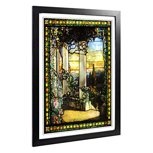 Louis Comfort Tiffany Stained Glass Window 2 Classic Painting Framed Wall Art Print, Ready to Hang Picture for Living Room Bedroom Home Office Décor, Black A3 (34 x 46 cm)