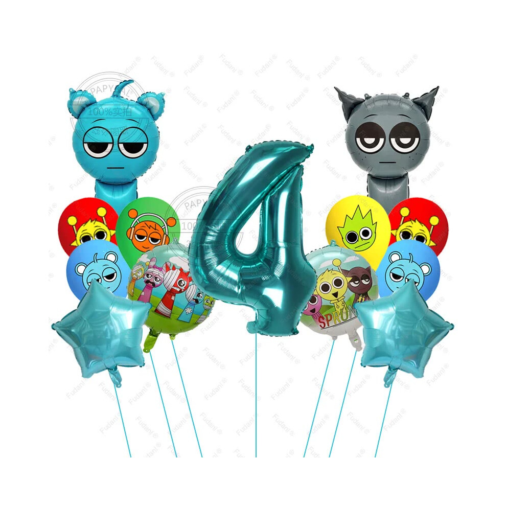 (4, AS PICTURE) 13pcs Sprunki Tiffany Blue Cartoon Foil Balloons - Colorful Rhythm Box Theme for Birthday, Baby Shower Parties