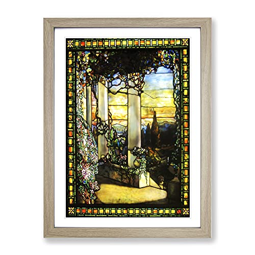 Big Box Art Framed Print of Louis Comfort Tiffany Stained Glass Window 2 Design | Wall Art Picture | Home Decor for Kitchen, Living Room, Bedroom, Hallway, Oak, A2 / 24.5x18 Inch / 62x45cm