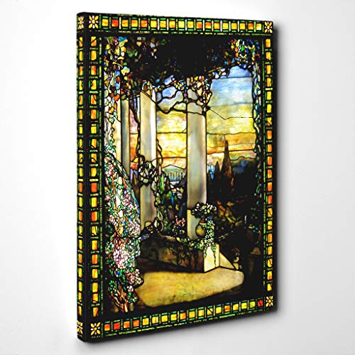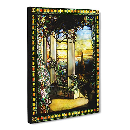 Louis Comfort Tiffany Stained Glass Window 2 Classic Painting Canvas Wall Art Print Ready to Hang, Framed Picture for Living Room Bedroom Home Office Décor, 20x14 Inch (50x35 cm)