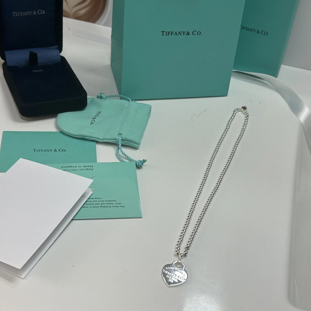 Tiffany & Co. 4MM Bead necklace Heart Tag Necklace Sterling Silver 925 W/ box