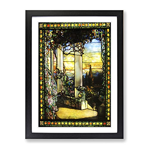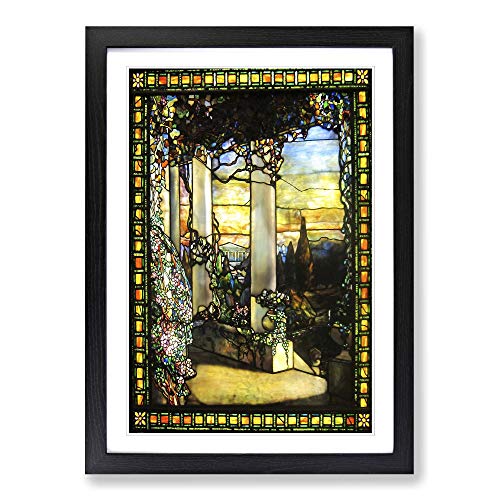 Big Box Art Framed Print of Louis Comfort Tiffany Stained Glass Window 2 Design | Wall Art Picture | Home Decor for Kitchen, Living Room, Bedroom, Hallway, Black, A2 / 24.5x18 Inch / 62x45cm