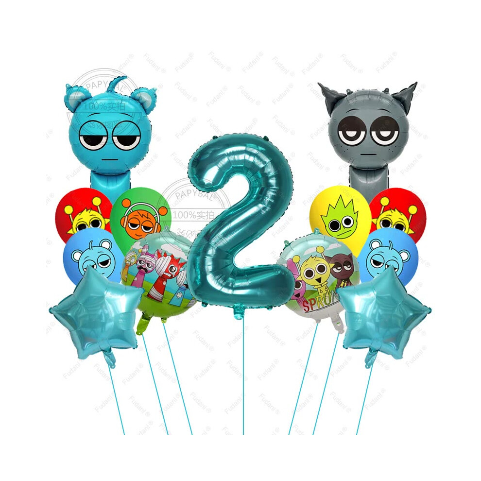 (2, AS PICTURE) 13pcs Sprunki Tiffany Blue Cartoon Foil Balloons - Colorful Rhythm Box Theme for Birthday, Baby Shower Parties