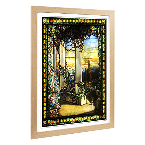 Louis Comfort Tiffany Stained Glass Window 2 Classic Painting Framed Wall Art Print, Ready to Hang Picture for Living Room Bedroom Home Office Décor, Oak A3 (34 x 46 cm)