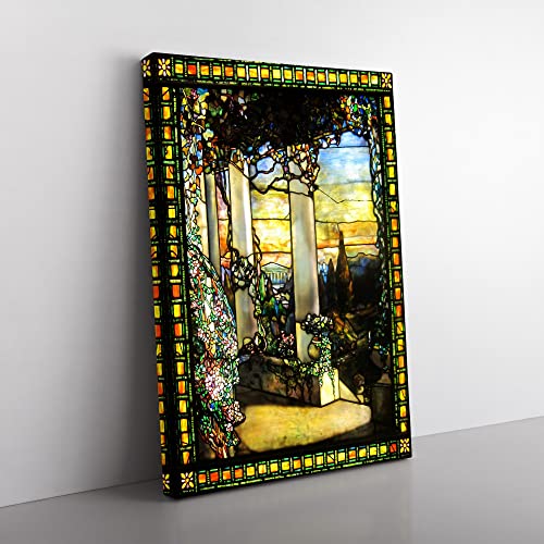 Louis Comfort Tiffany Stained Glass Window 2 Classic Painting Canvas Wall Art Print Ready to Hang, Framed Picture for Living Room Bedroom Home Office Décor, 76x50 cm (30x20 Inch)