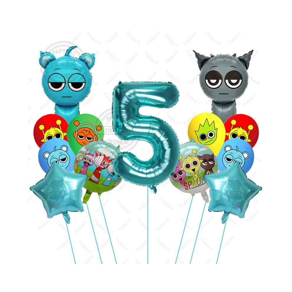 (5, AS PICTURE) 13pcs Sprunki Tiffany Blue Cartoon Foil Balloons - Colorful Rhythm Box Theme for Birthday, Baby Shower Parties