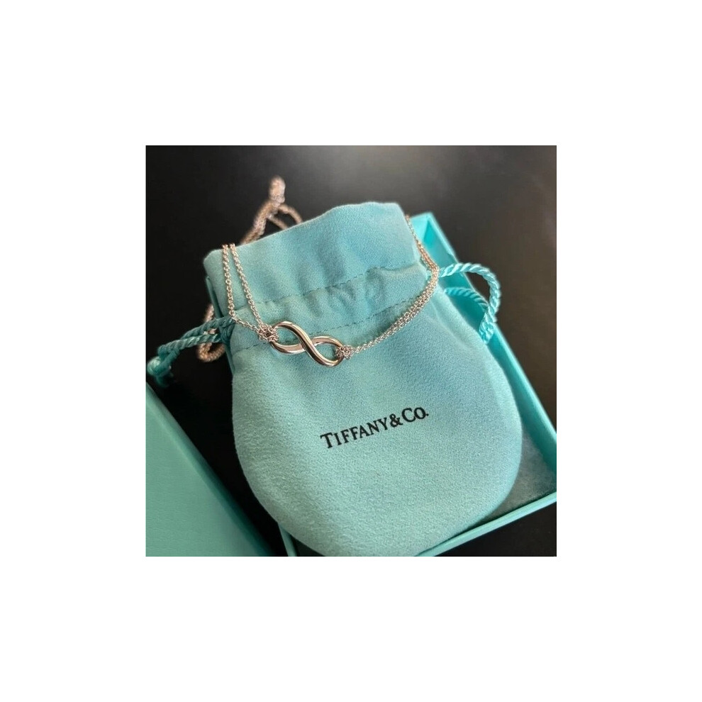 NEW Tiffany & Co Sterling Silver Infinity Double Chain Necklace 16" Pouch & Box