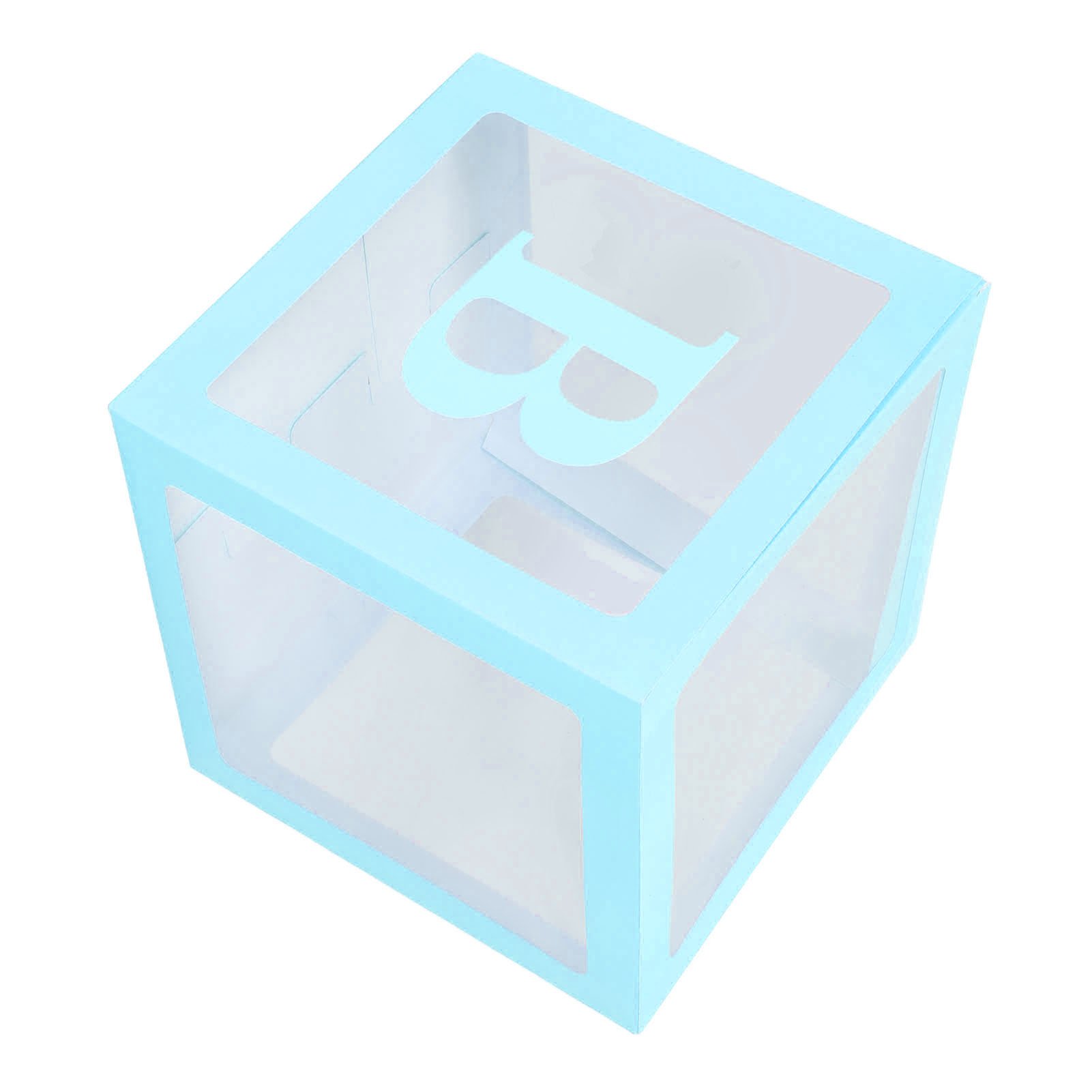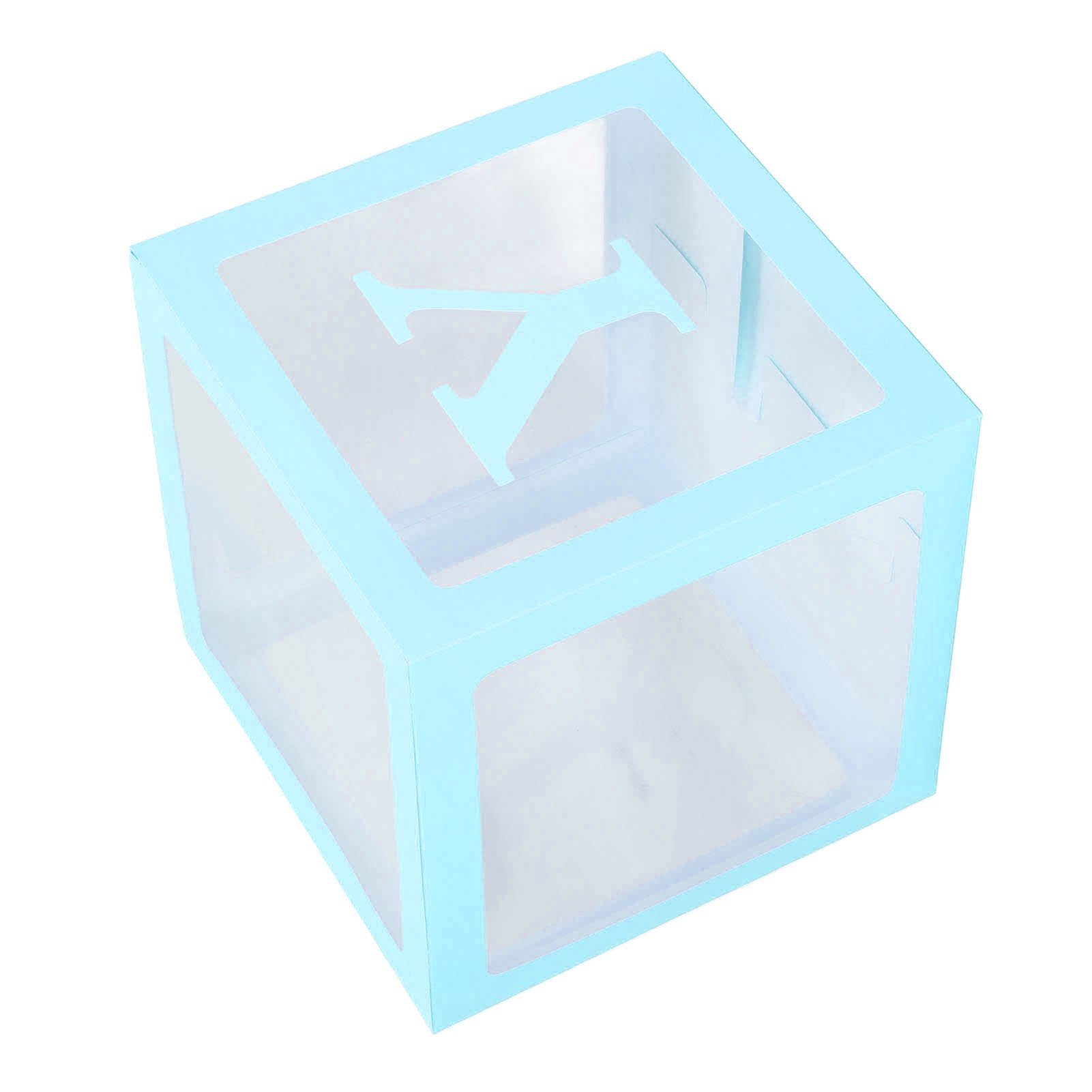 Generic 4PCS Transparent Balloon Box with Letters Gift Decoration for Proposal Confession Baby Shower Party Celebration Clear Plastic Easy Assemble (Blue)