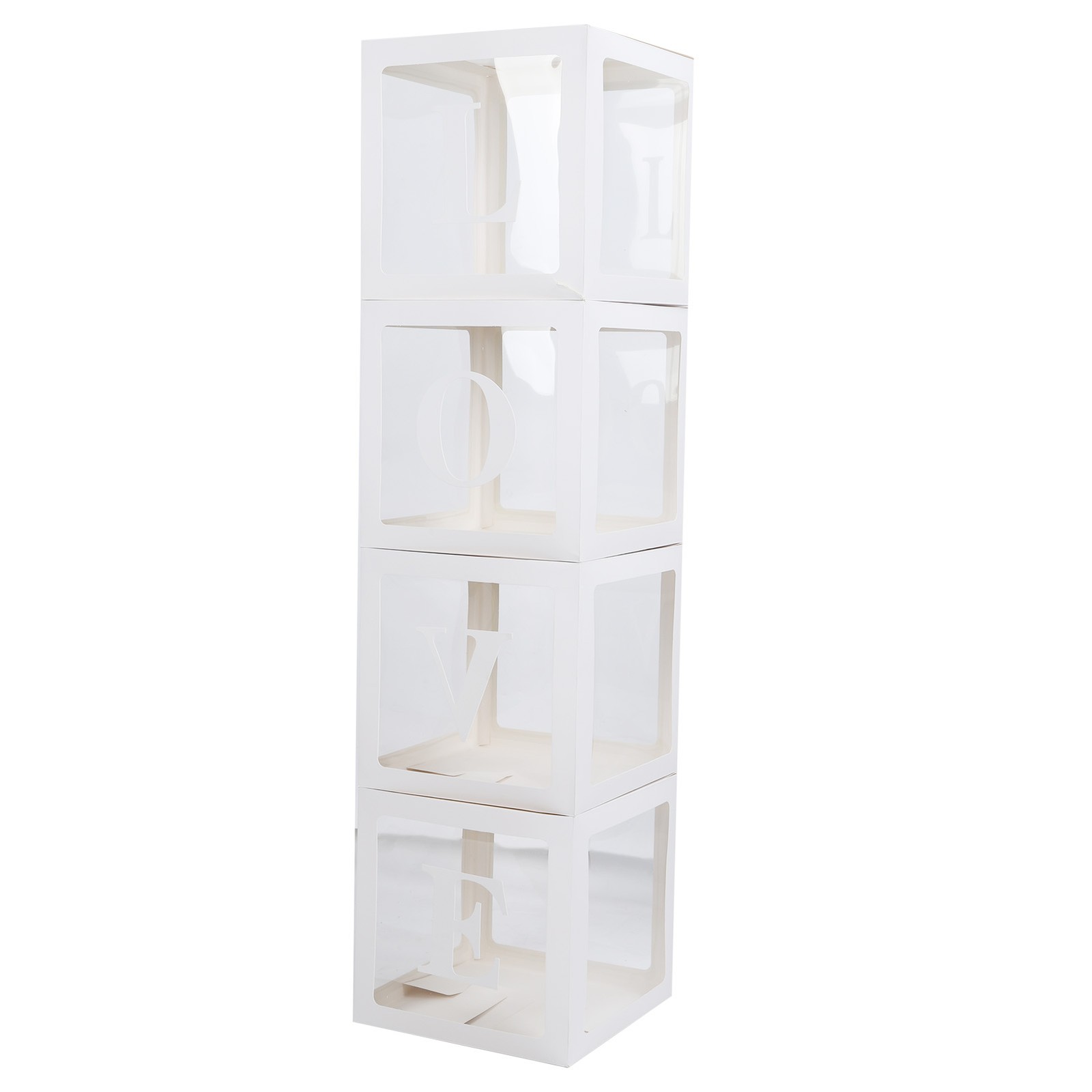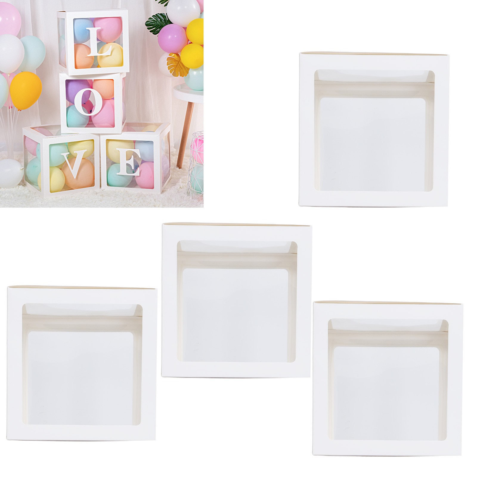 4PCS Transparent Balloon Box with Letters, Durable Material Decoration Box for Baby Shower Holiday Celebration - Easy Assembly (White)