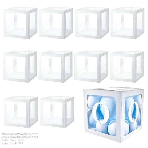 AHAQU 10PCS Baby Shower Decorations Boxes, White Transparent Balloon Box with 70 Letters (2 Sets of A-Z+BABY+LOVE+ONE) for DIY Birthday Party, Gender Reveal, Theme Party Supplies Decoration