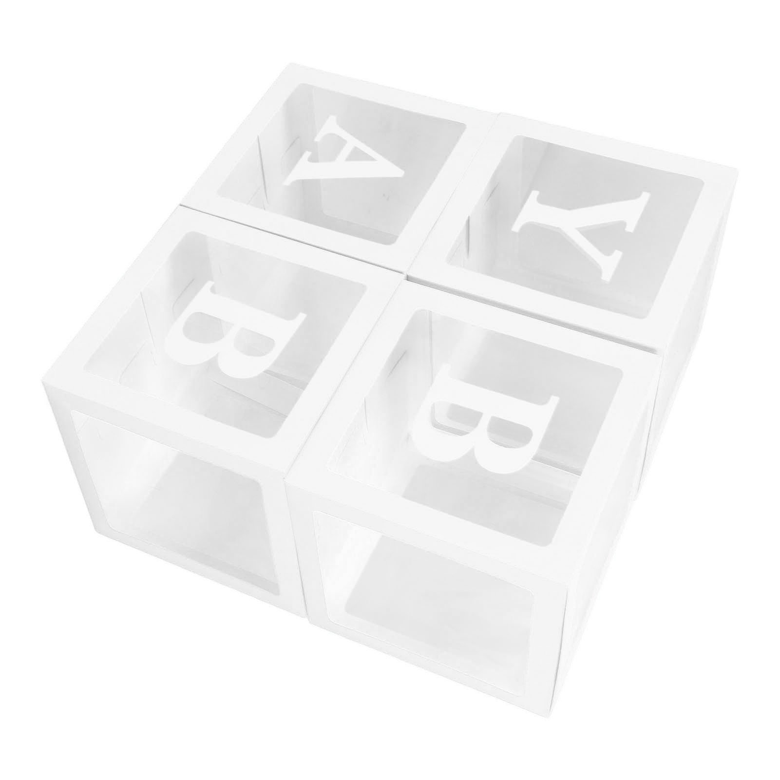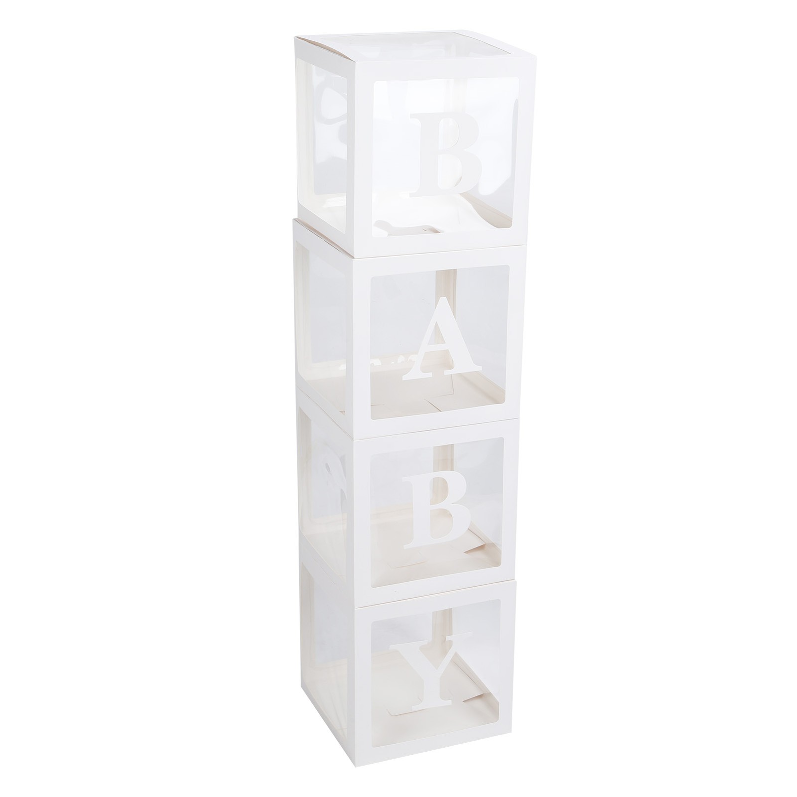 QIFU 4Pcs Baby Shower Balloon Box with 27 Letters for Boy Girl Birthday, 4 Tran