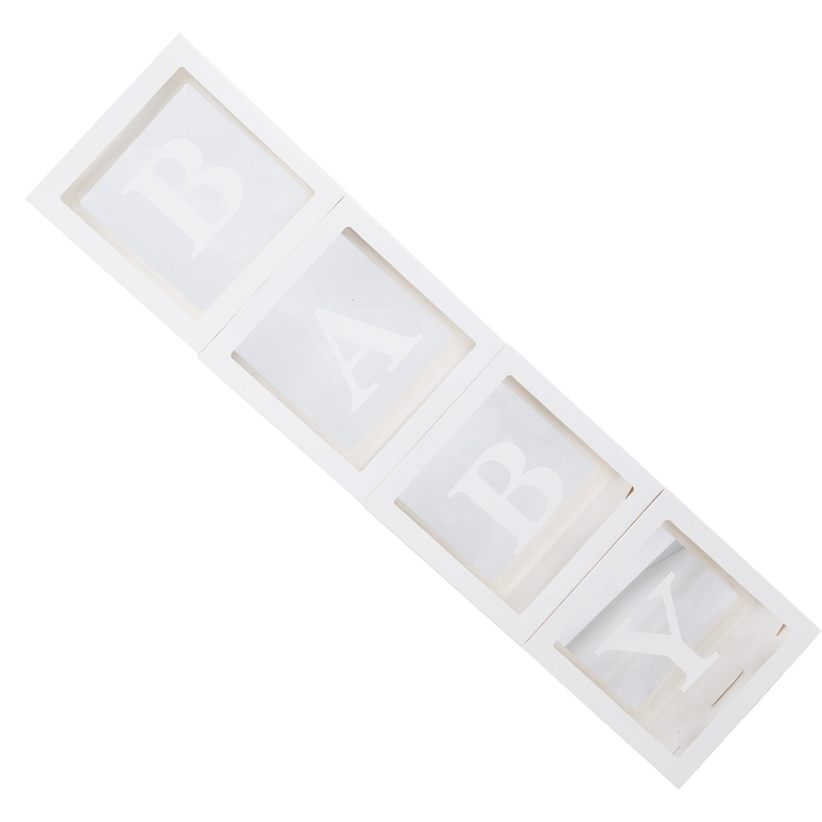 Phefop 4Pcs Balloon Box Transparent Case with Letters Decorative Party Supplies Home Decor for Baby Shower Wedding Birthday Party (baby)
