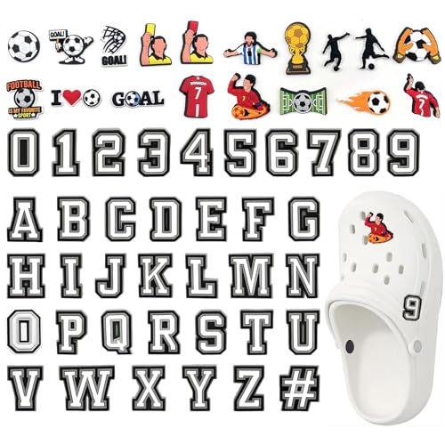 57 Pieces Shoe Charms for Croc Charms with Storage Box, Letters Numbers and Football, PVC Shoes Decoration Accessories for Kids Teens Adults Birthday Party Gifts