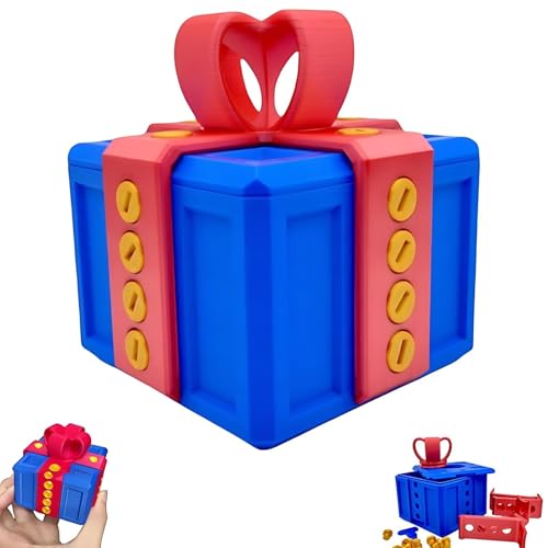 YUEHISY Annoying Present Box with Screws, Prank Screw Box, Novelty Funny 3D Printed Present for Storing Toys Holiday Decorations (Blue Red)