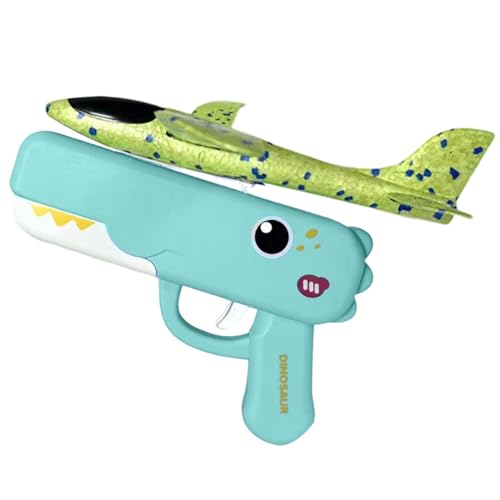Cute Dinosaur Airplane Launcher Toy -Boxed Version, Foam Airplane Launcher Toy, Dinosaur Foam Glider Airplane Launcher, Outdoor Flying Aircraft with Long Flight Distance, Gift for Boys Girls (Green)