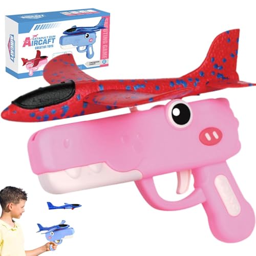 Y-M-H Cute Dinosaur Airplane Launcher Toy -Boxed Version,Outdoor Flying Catapult Toy,Fun Birthday Gifts,Easy to Launch Foam Aircraft (Pink)