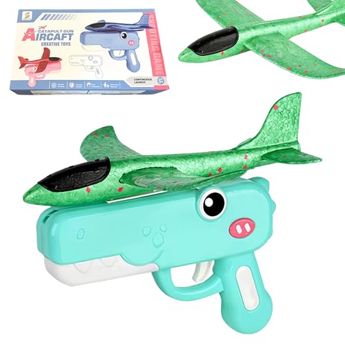 Y-M-H Cute Dinosaur Airplane Launcher Toy -Boxed Version,Outdoor Flying Catapult Toy,Fun Birthday Gifts,Easy to Launch Foam Aircraft (Green)