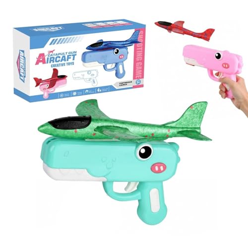 Cute Dinosaur Airplane Launcher Toy-Boxed Version, Outdoor Flying Catapult Toy, Easy to Launch Foam Aircraft, Lightweight Easy Launch Long Distance 33-59ft, Fun Birthday Gifts (#A)