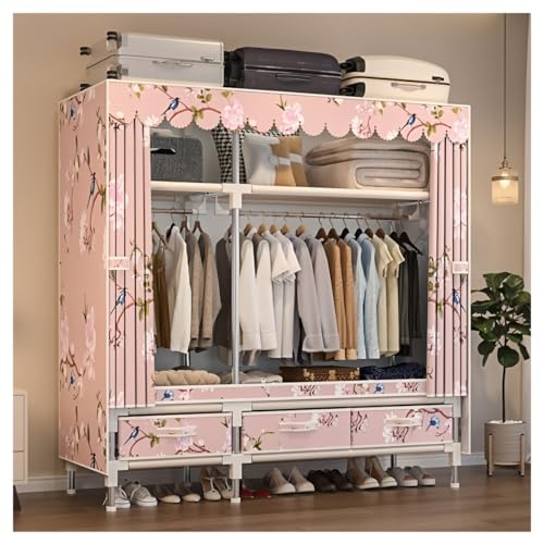 HZXQCVB Closet Wardrobe Portable Clothes Closet with Drawer Boxes Shelves Clothing Storage with Hanging Rack Storage Organizer for Cloakroom Bedroom Entrances(Pink,165x45x165CM)