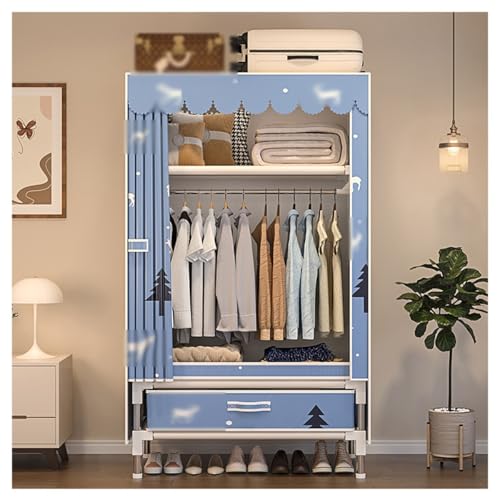 HZXQCVB Closet Wardrobe Portable Clothes Closet with Drawer Boxes Shelves Clothing Storage with Hanging Rack Storage Organizer for Cloakroom Bedroom Entrances(Blue,60x45x165CM)