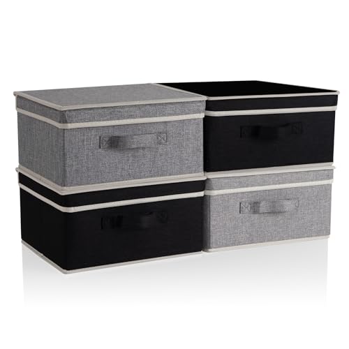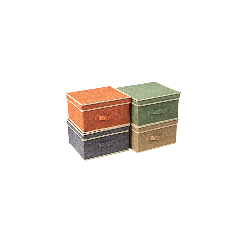 BrilliantJo Storage Boxes with Lid, Foldable Clothing Storage Basket case with Handle for Closet, Bedroom, Home, 33.5L x 31.75W x 17.5H(cm) 4 mixed colors A