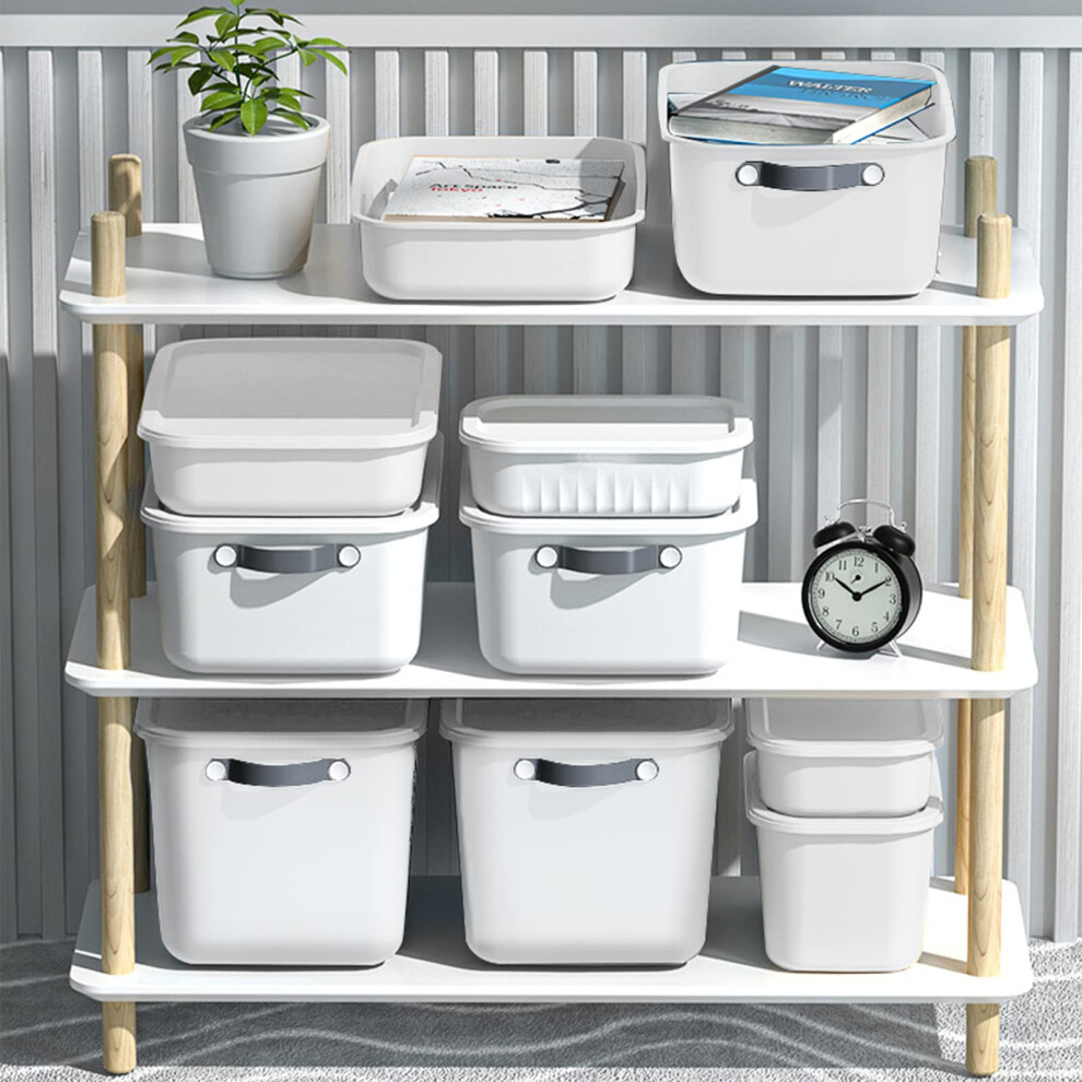 ZPONEED Set of 8 Storage Boxes with Lid, Stackable Clothing Storage Basket case with Handle for Toy, Books, Closet, Bedroom, Home, White
