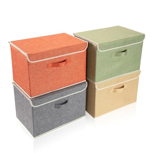 BrilliantJo Storage Boxes with Lid, Foldable Clothing Storage Basket case with Handle for Toy, Books, Closet, Bedroom, Home, 33.5L x 31.75W x 17.5H(cm) 4 Mixed Colors A