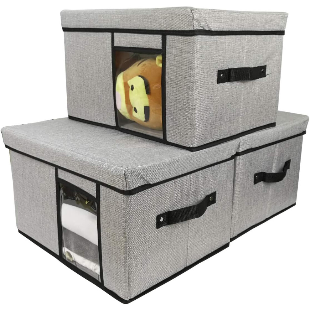 BrilliantJo Storage Boxes with Lid, Foldable Clothing Storage Basket case with Handle for Toy, Books, Closet, Bedroom, Home, 33.5L x 31.75W x 17.5H(c
