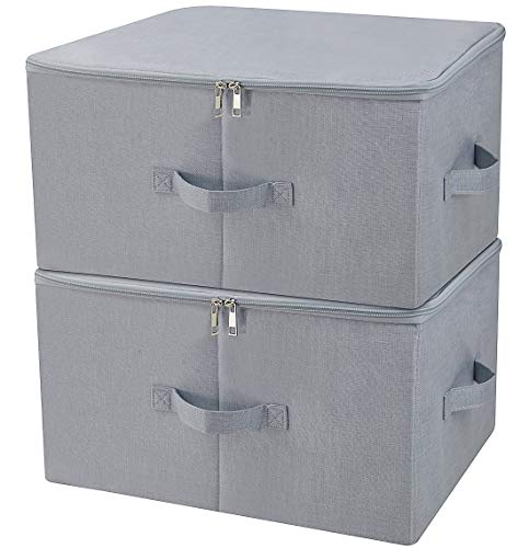 iwill CREATE PRO 45 * 35 * 25cm Attic Shelf Clothes Storage Boxes with Lid, Folding Sturdy Storage Bins for Clothing Blankets Duvets Organizer, Light Gray, Pack of 2
