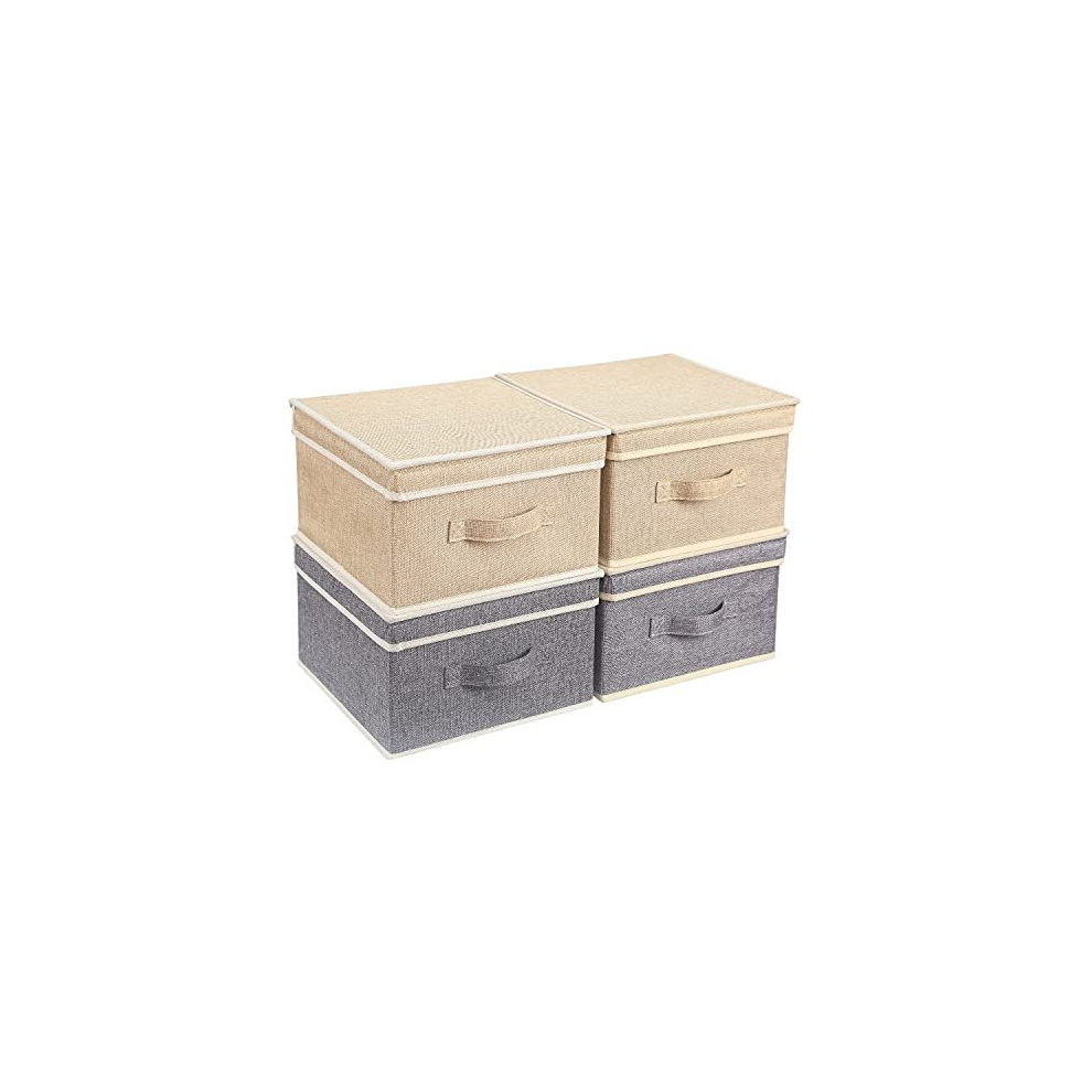 BrilliantJo Storage Boxes with Lid, Foldable Clothing Storage Basket case with Handle for Closet, Bedroom, Home, 33.5L x 31.75W x 17.5H(cm) 4 mixed c