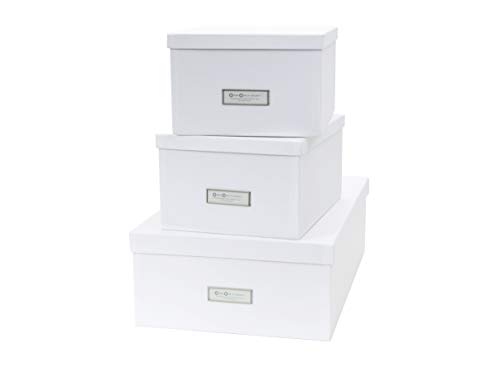 Bigso Box of Sweden Set of 3 Storage Boxes with Lids - Organiser Box For Clothes, Office Equipment and More - Wardrobe Storage Boxes with Labels for Bedding or Seasonal Clothing - White