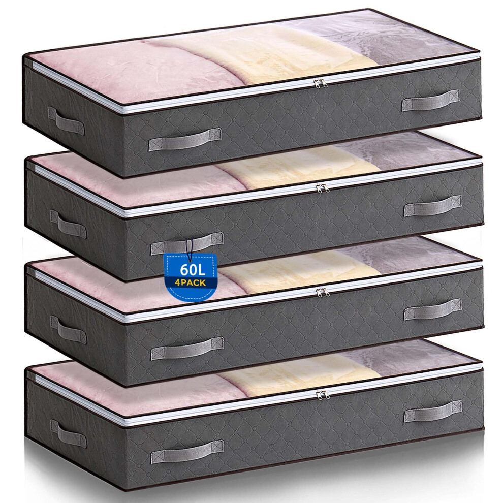 Boic 4 Pack 60L Underbed Storage, Foldable Underbed Storage Bags, Under Bed Storage Box With Lid, Underbed Storage Boxes Clothing Storage Bags With