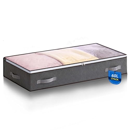 Boic 1 Pack Underbed Storage, 60L Underbed Storage Bags, Under Bed Storage Box With Lid, Underbed Storage Boxes Clothing Storage Bags With Reinforced Handle For Clothes Quilts Blankets Beddin
