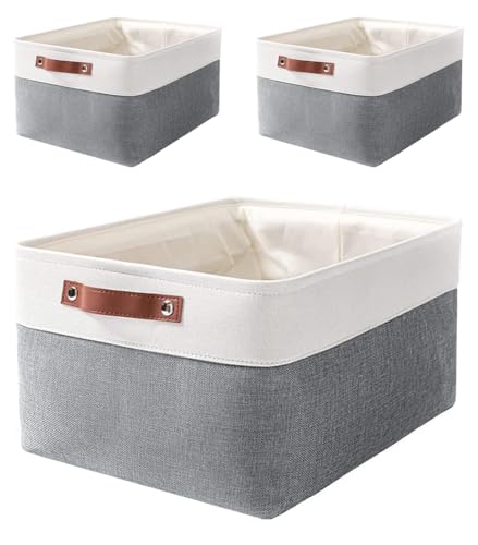 Mangata XLarge Fabric Storage Boxes, 3-Pack Collapsible Clothing Storage Basket, for Clothes Toy Cupboards Shelves(XL, Cold Grey)