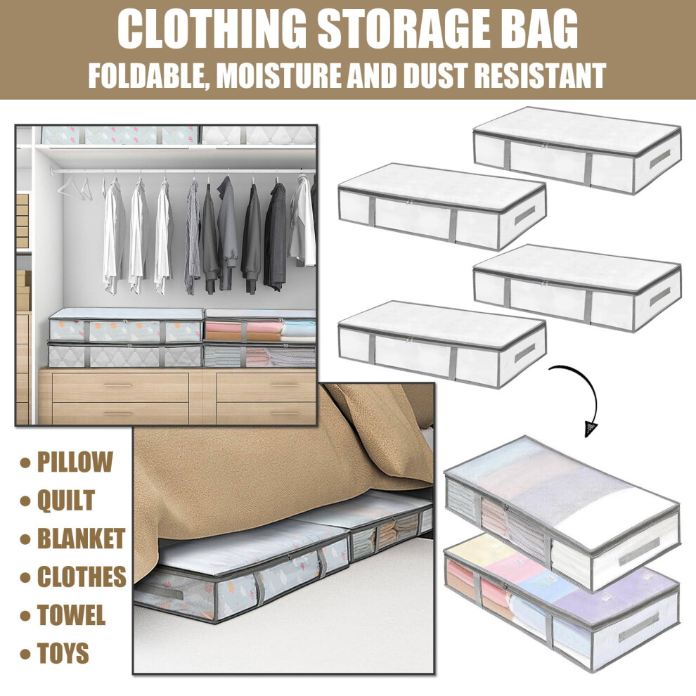4-pack Under Bed Storage Boxes, Plastic Storage Boxes, Closet Organizers And Clothing Storage Bags(One Size,Color)