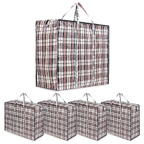 Laundry Bag Heavy Duty Storage Bags Reusable Strong Clothes Storage Bags Zip Nylon Large Boxes for Moving House Clothing & Wardrobe Storage (Pack of 5)