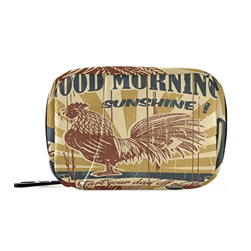 Vintage Good Morning Sunshine Drawing Rooster Pill Case with Removable Internal Plastic Boxes Organizer, Small Medicine Bag Holder Zippered Carrier for Travel Storage Container