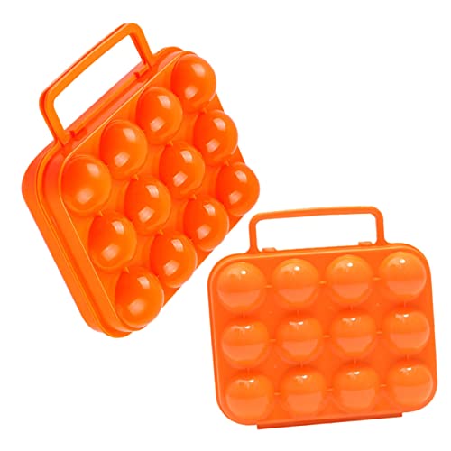 Sewroro 2pcs Portable Plastic Egg Storage Boxes 12-egg Capacity with Shockproof Design and Handle, Outdoor Picnic Egg Carriers and Refrigerator Organizer in Orange