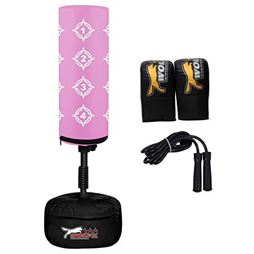 Wolfx Wolf New Kids Free Stand Bag Boxing Kick Boxing Punch Bag Stand Heavy Martial Arts Bag Mitt Skipping Rope Set UK Made (Pink)